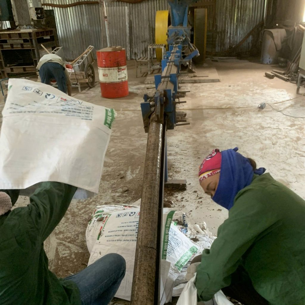 - Ép thành thanh củi bằng máy ép