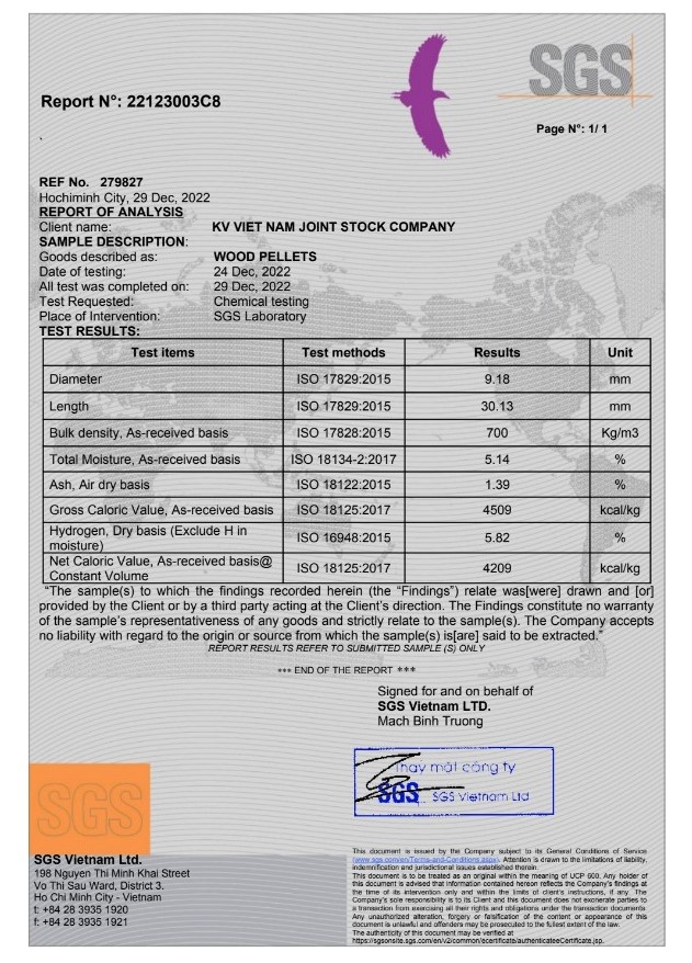 Tại Nhà máy sản xuất viên nén gỗ của Công ty KV Việt Nam. Chúng tôi luôn đặt vấn đề kiểm soát chất lượng là ưu tiên hàng đầu. Từ khâu lựa chọn nguyên liệu đầu và kiểm tra đọ tro, độ ẩm đều được thực hiện hàng ngày. Ngoài ra Công ty còn có hệ thống lọc tách sắt nhiều tầng nhằm đảm bảo chất lượng sản phẩm luôn đảm bảo tốt nhất.